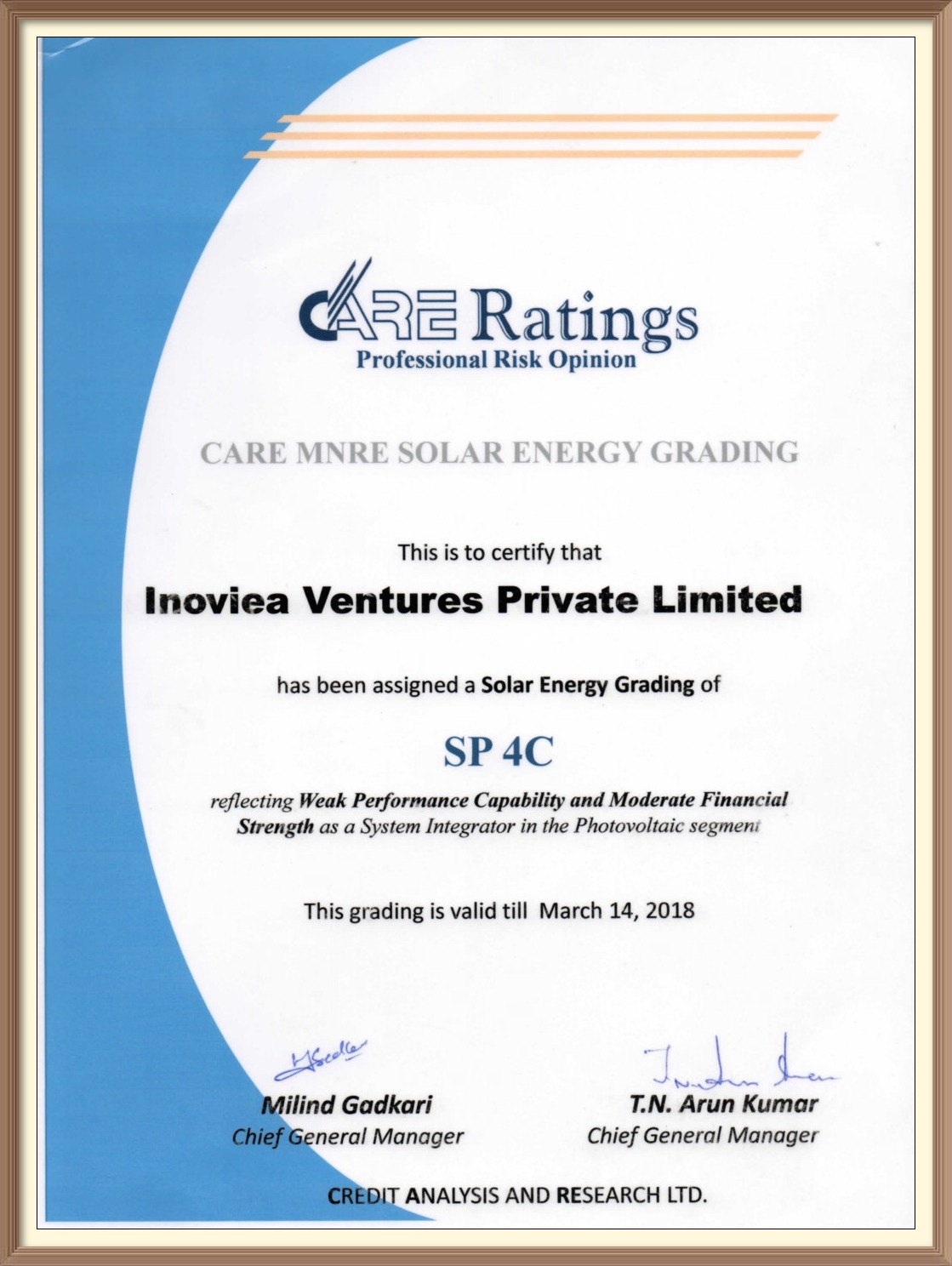 Inoviea is now a Government recognised Startup. Inoviea is ISO 9001:2015 certified company registered with MSME & NSIC,CRISIL rated SP 4C and MNRE empanelled.